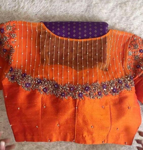 Orange pattu blouse