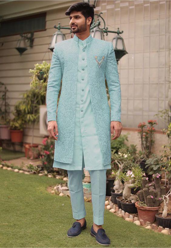 Pastel blue embroidered sherwani