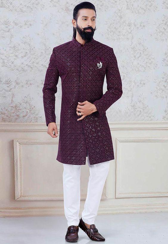 Wine velvet sherwani